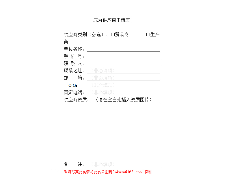 成為供應(yīng)商申請表